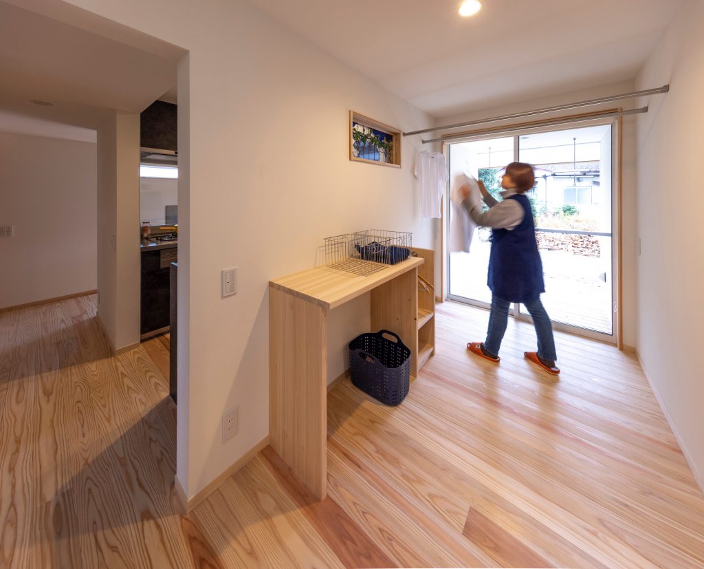 リビングと寝室の間にサニタリーを設けました。