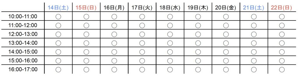 日時:1月14日(土)15日(日)、21日(土)22日(日)