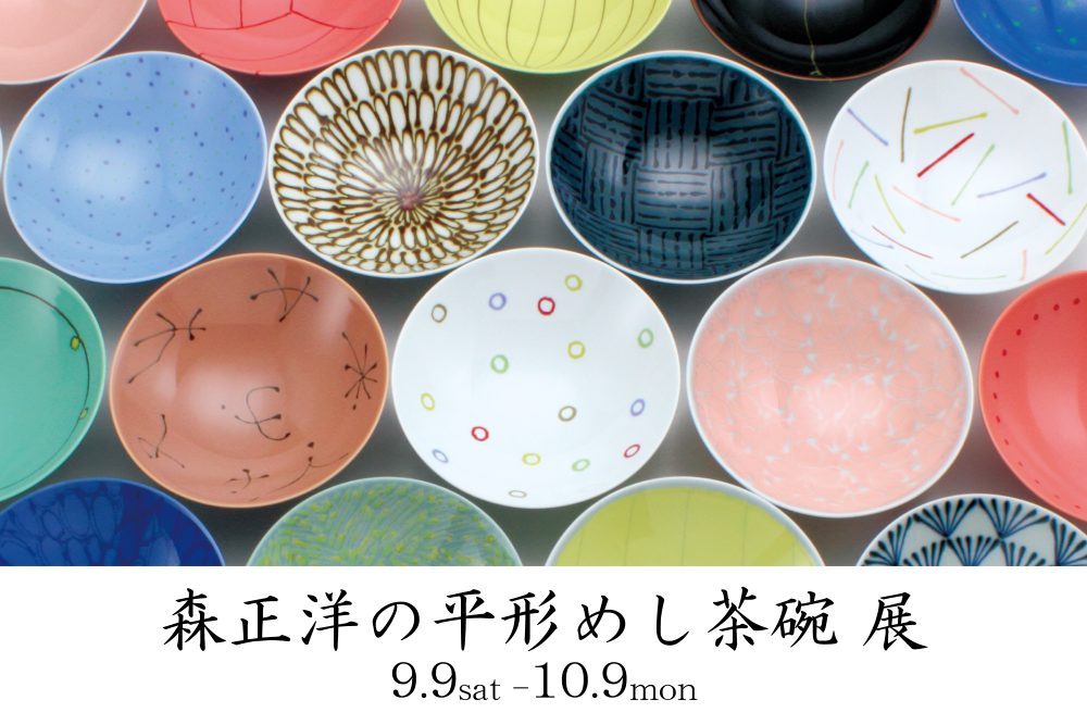 日本を代表するプロダクトデザイナー森正洋氏の 代表作でもある「平形めし茶碗」が70種類以上並びます。