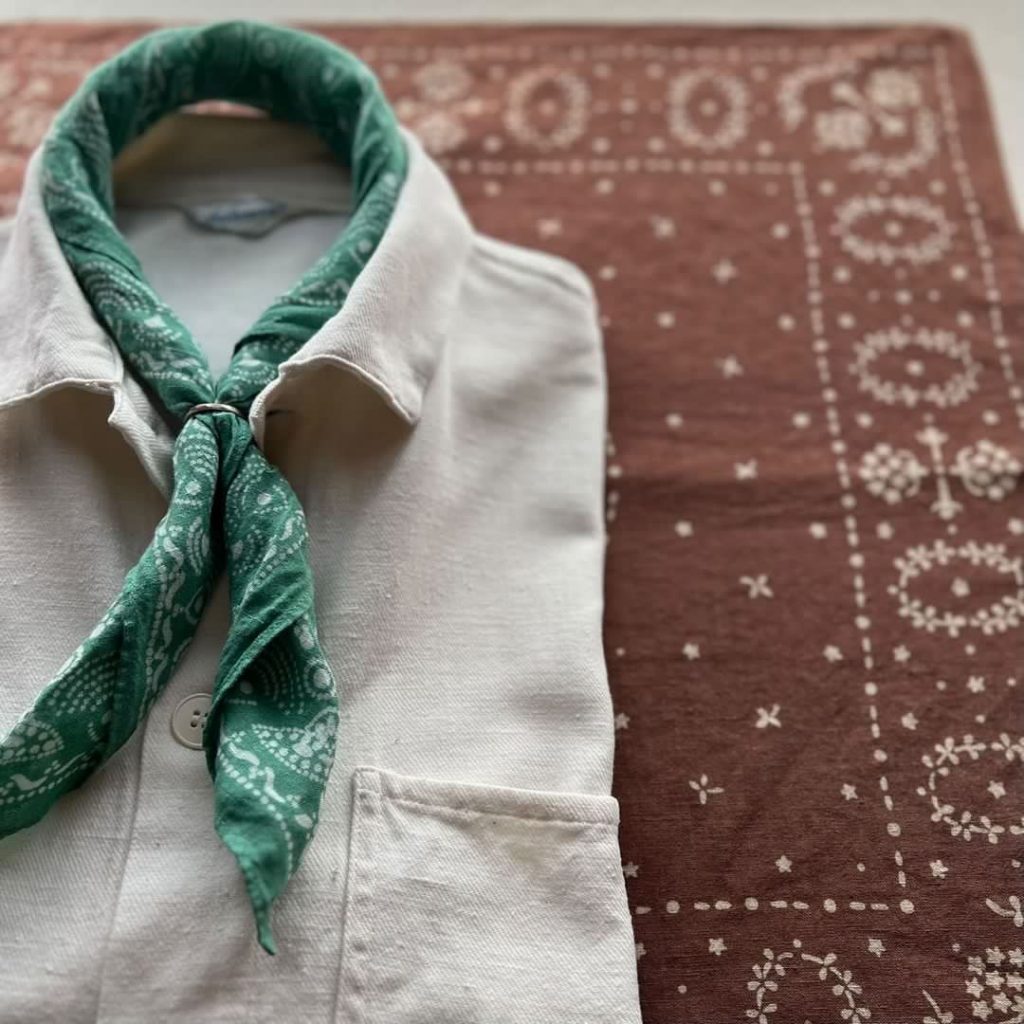 デザインおこしから色染め、仕上げの処理まで1枚ずつ丁寧に作られているリネンバンダナ。東京、神奈川、群馬…様々なエリアで大忙しのお店です。丁寧に作られたバンダナは絶妙な色味と使うほど変化の出る肌触りを楽しみながらライフスタイルを彩ります。