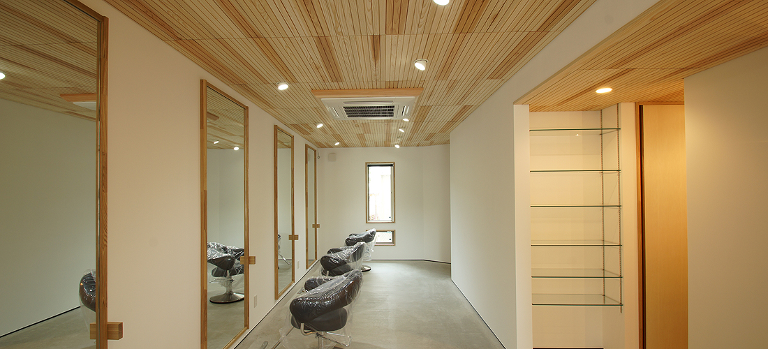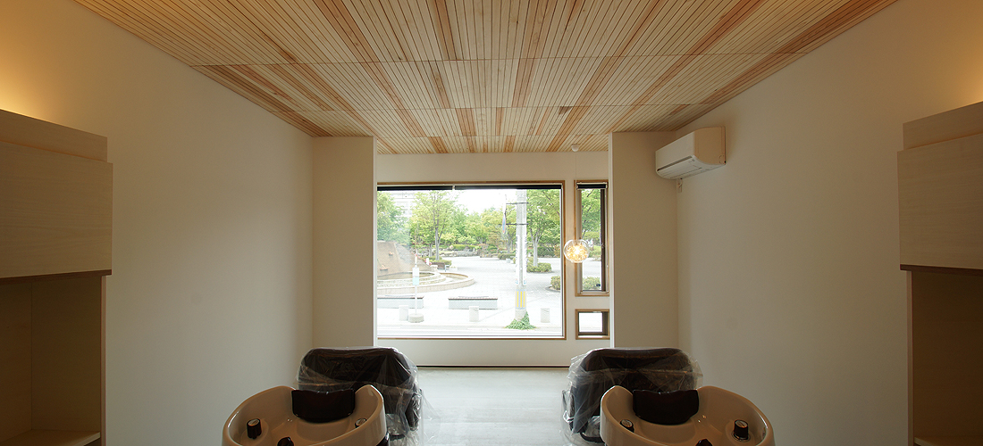 市内の公園を望む店舗併用住宅。 1階が店舗で2階にLDK+ロフトを設けました。 各部屋からは隣接する公園を望む事が出来るように開口部を配置。借景が楽しめる店舗併用住宅です。