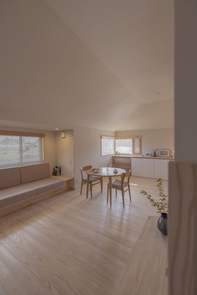 柔らかい木目が白壁に映える、日々の暮らしやすさにこだわった平屋の住まい